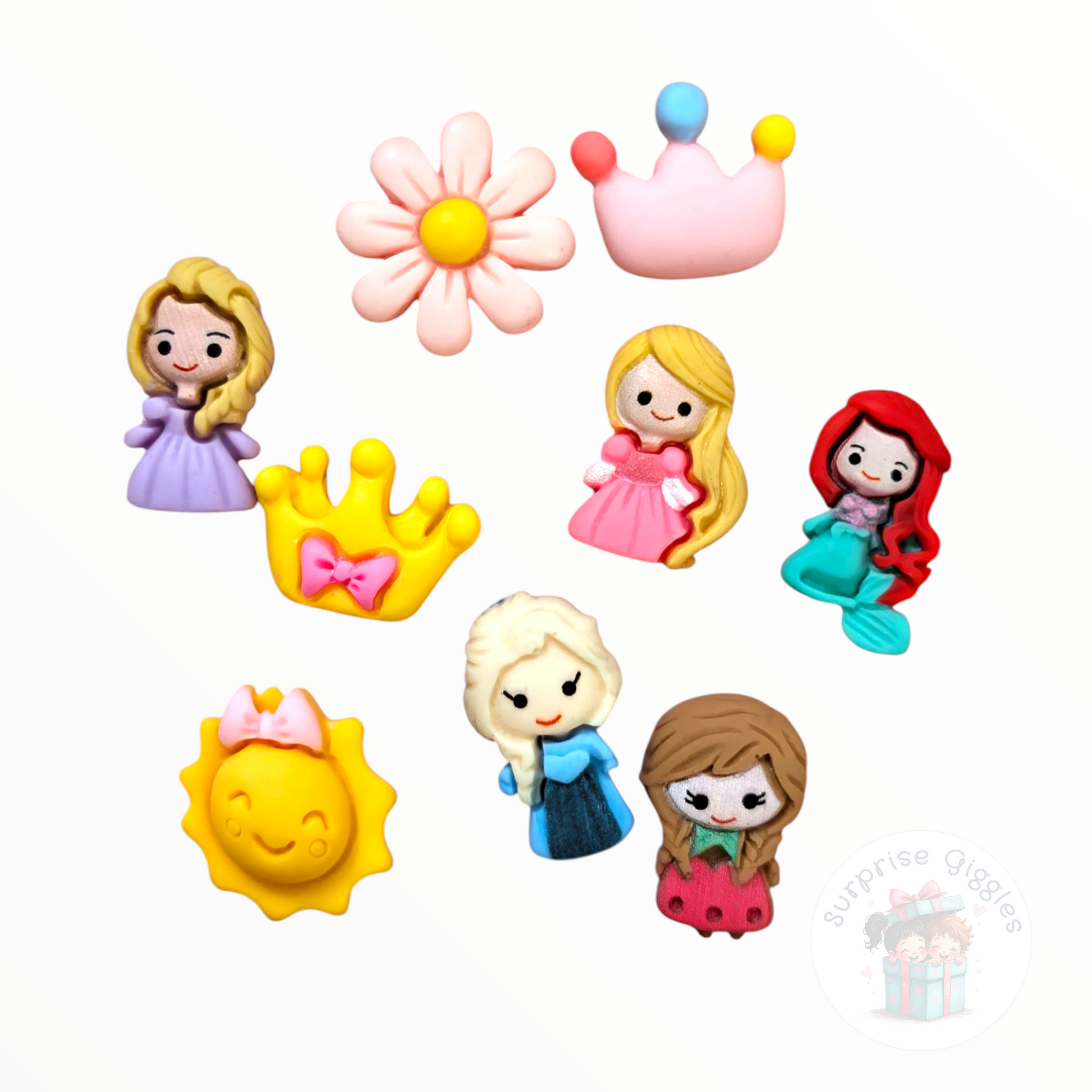 - 6 Princess-themed resin with adhesive (assorted designs)